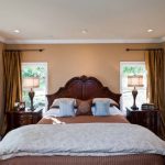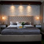 La organización de la iluminación depende de la altura del dormitorio y del tipo de techo. Al estudiar la foto del diseño de habitaciones de 12 metros cuadrados, puede prestar atención a que los elementos principales se consideran una hermosa lámpara de araña de techo y fuentes de iluminación de cabecera, que se fijan sobre la cama o se instalan en la mesita de noche. Es importante que cada lado de la cama tenga su propia luz nocturna independiente.