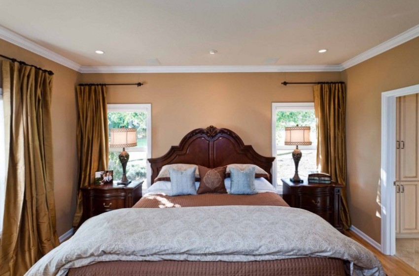 El diseño de una habitación depende no solo de los elementos que desee ver en el dormitorio, sino también de las características de la habitación en sí: de la cantidad de puertas y ventanas, así como de su ubicación. Si miras las fotos de los diseños de dormitorios de 11 m2. m (o 12 metros cuadrados), entonces puede ver la opción de diseño clásico, en la que la cama se coloca en el centro de la habitación cerca de una de las paredes. En un lado habrá una pared con una ventana, y en el otro, con una puerta, la cuarta pared se usa con mayor frecuencia para colocar un gabinete.