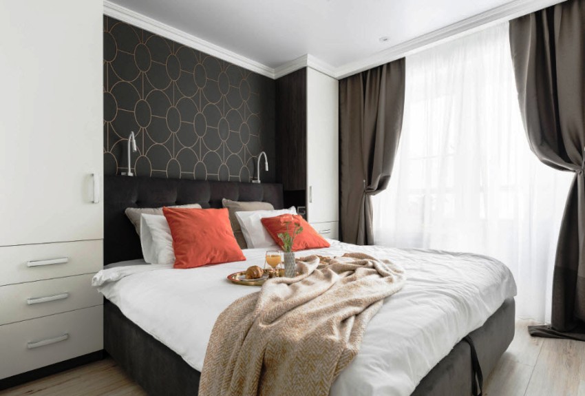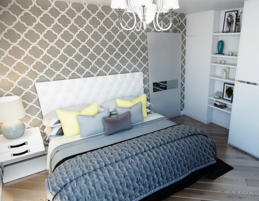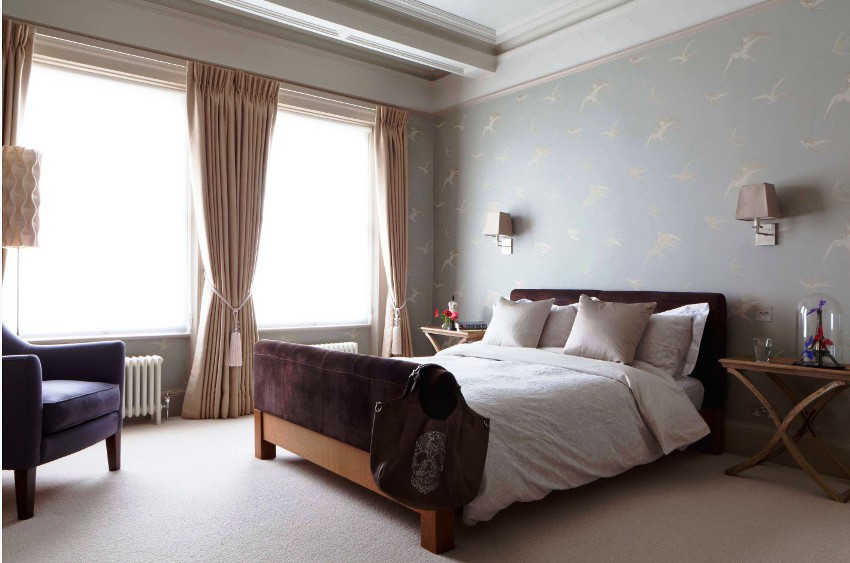 Por lo general, se utilizan varias opciones de papel tapiz para decorar las paredes del dormitorio: