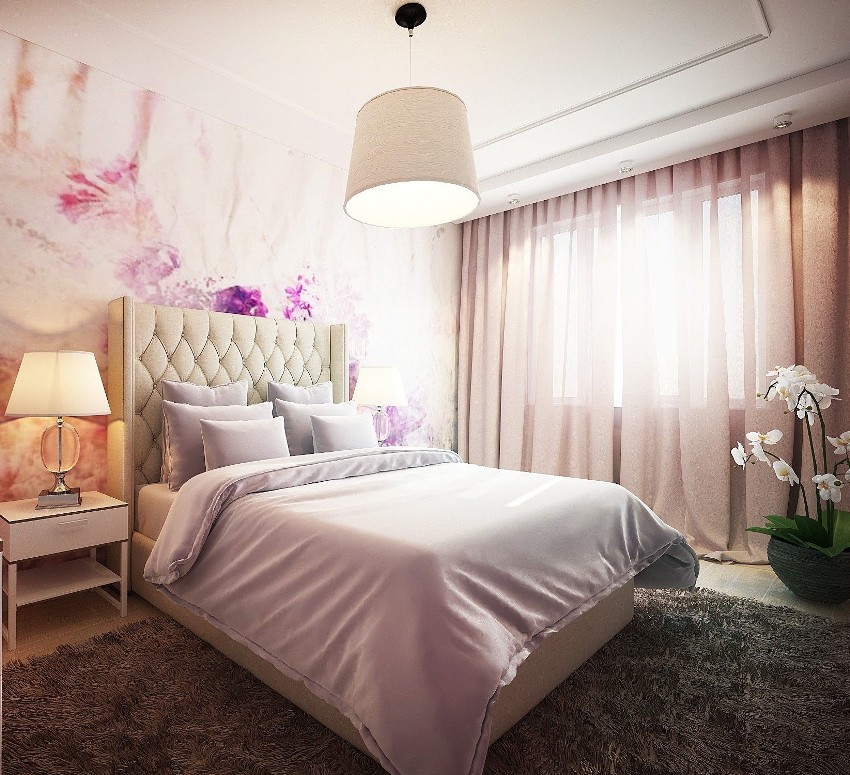Paralelamente a la elección de colores y estilo, puede planificar la decoración del techo, las paredes y el piso del dormitorio.
