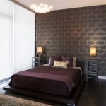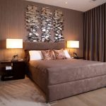 - Encendiendo. Cualquiera que sea la renovación que se planee en el dormitorio, debe pensar en la cantidad de elementos de iluminación con anticipación. Debe determinar de inmediato la cantidad requerida de lámparas y su ubicación: en el techo, las paredes, cerca de la cama. Si planifica estos momentos con anticipación, puede ocultar inteligentemente todos los cables.