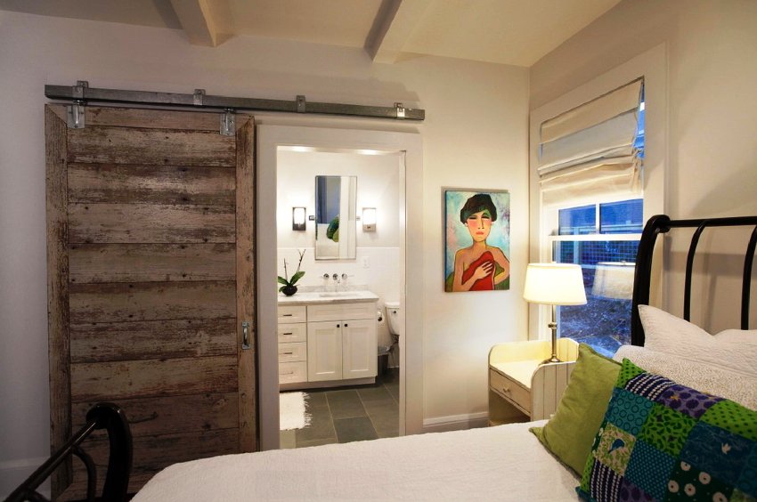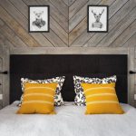 ¡Aviso util! Los diseñadores no recomiendan colocar la cama directamente frente a la puerta para que no llame la atención sobre sí misma. Si esto no se puede evitar, se debe instalar un elemento de acento cerca de la cama, lo que distraerá la vista del lugar para dormir.