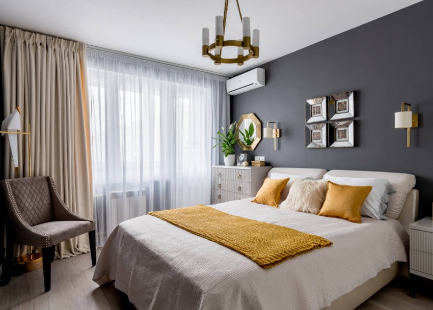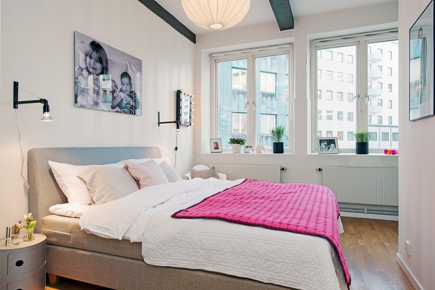 - 5 Cómo equipar un dormitorio de 12 m2. m: foto de soluciones de color, selección de iluminación y decoración