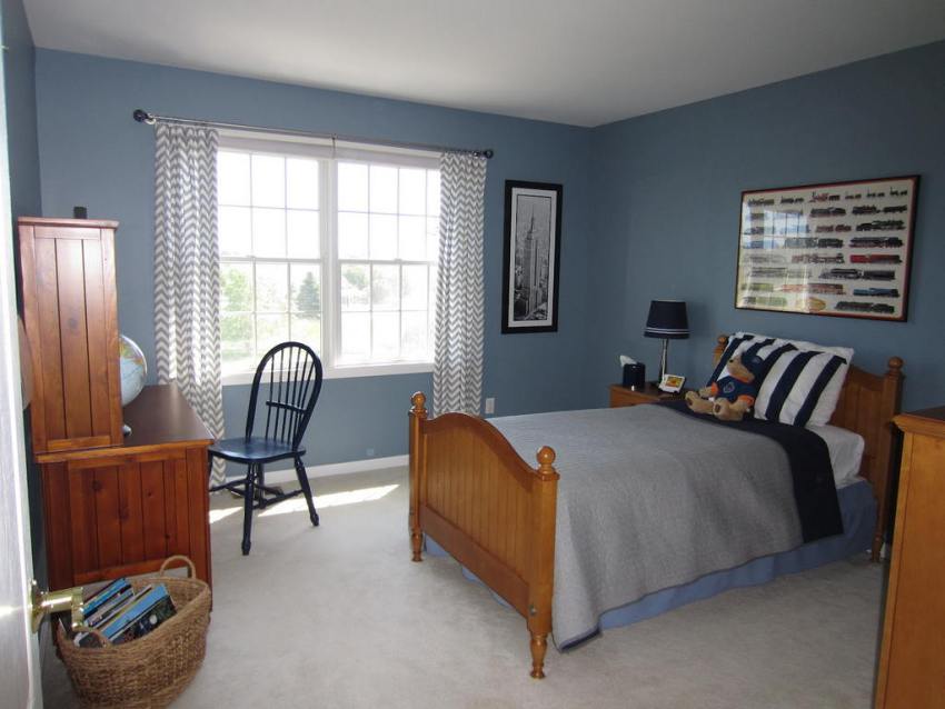 - Escandinavo. Una opción modesta que prefiere un acabado blanco simple, la presencia de muebles de madera. Una colcha azul claro en la cama se convertirá en un adorno.