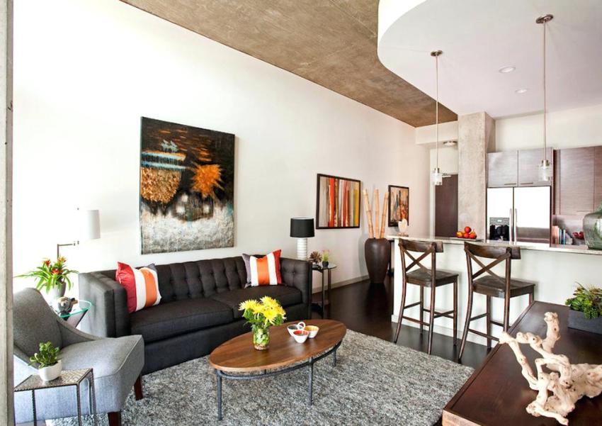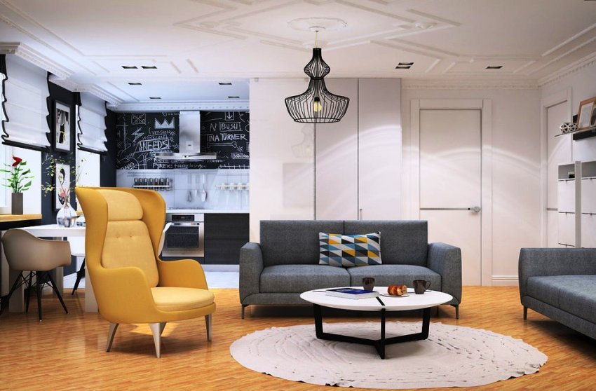 Los elementos de mobiliario específicos deben seleccionarse después de determinar el concepto de zonificación del espacio, que depende de las preferencias personales de los propietarios y el propósito futuro de la habitación. La sala de estar se puede utilizar para un pasatiempo conjunto de todos los miembros de la familia, para cada uno de los cuales se debe organizar un área personal independiente. Un rincón conveniente y cómodo está equipado para recibir invitados. Al combinar una sala de estar con un comedor o un dormitorio, también se asume un enfoque especial para la planificación.