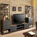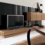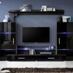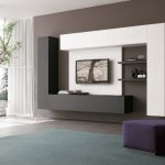 Otro tipo de pared recta es un mini-tobogán, que consta de un par de pedestales para TV y equipo, un pequeño mueble o cómoda y varios estantes abiertos o cerrados ubicados sobre los pedestales.