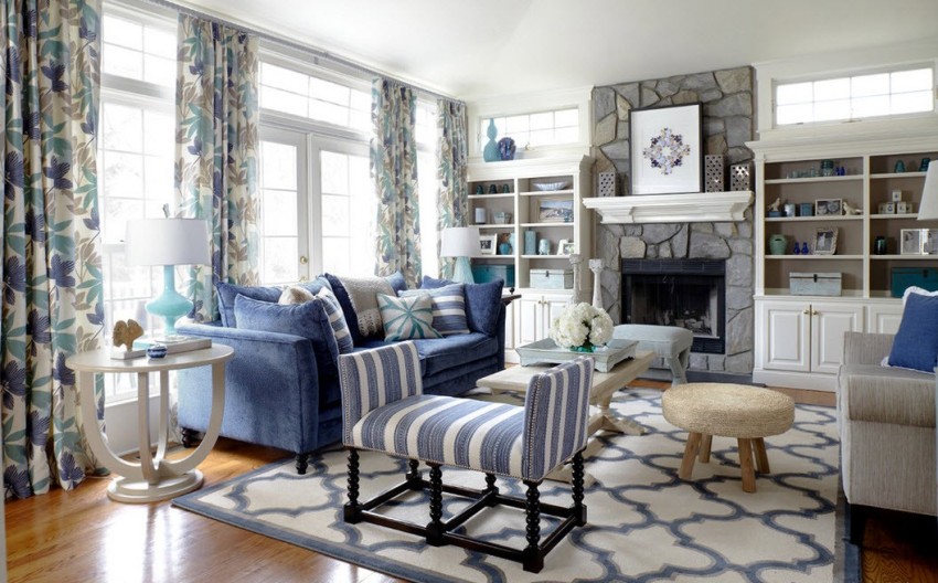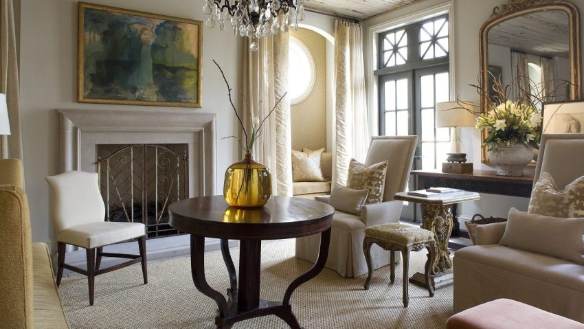 Para que la sala de estar se sienta acogedora, necesita alfombras suaves y sillones bajos para combinar con hermosas lámparas de estilo clásico.