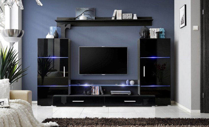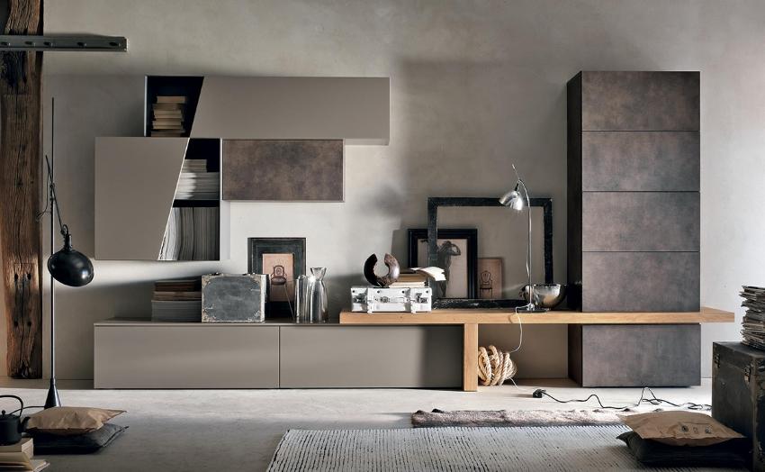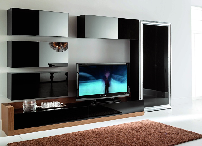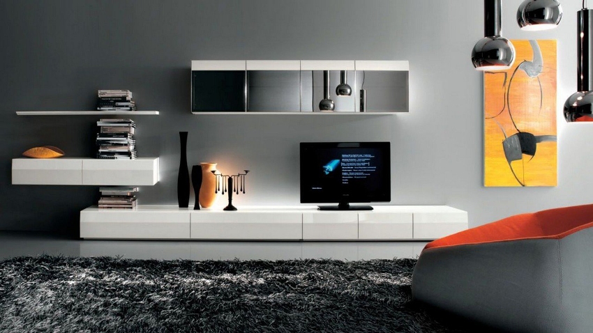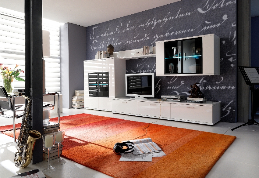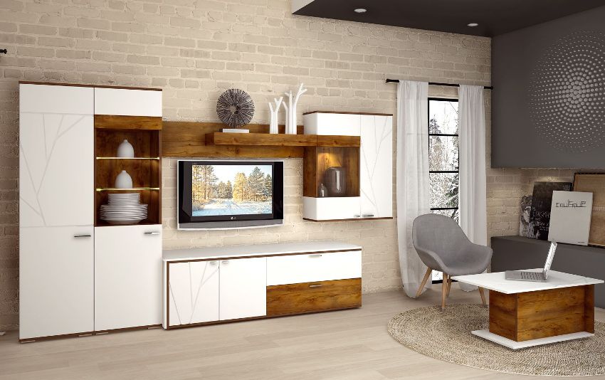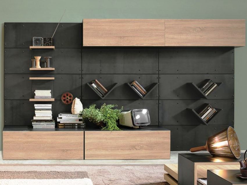 El diseño moderno tiene una serie de ventajas. El conjunto de muebles es bastante espacioso y compacto al mismo tiempo. No ocupa mucho espacio, siendo, a su vez, un mueble multifuncional. Se puede atribuir a los sistemas modulares que le permiten intercambiar componentes sin perder el concepto general. Los toboganes de pared modernos para la sala de estar se distinguen por un diseño minimalista, que permite colocar el producto en cualquier interior. Los diseños se presentan en una amplia variedad de configuraciones, materiales, texturas y colores.
