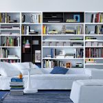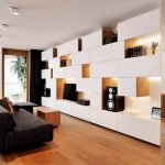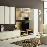 Es mejor instalar objetos de esquina en áreas oscuras de la habitación, para que no oculten visualmente el espacio útil, siendo la opción óptima y espaciosa para organizar un sistema de almacenamiento. Deben colocarse pequeños estantes abiertos cerca de la ventana. Es mejor instalar un bastidor junto a la puerta. Para crear un ambiente confortable cerca del sofá, se recomienda colocar los aparadores en combinación con una elegante mesa de centro. Los diferentes métodos de colocación se muestran en la foto de los muebles del salón.