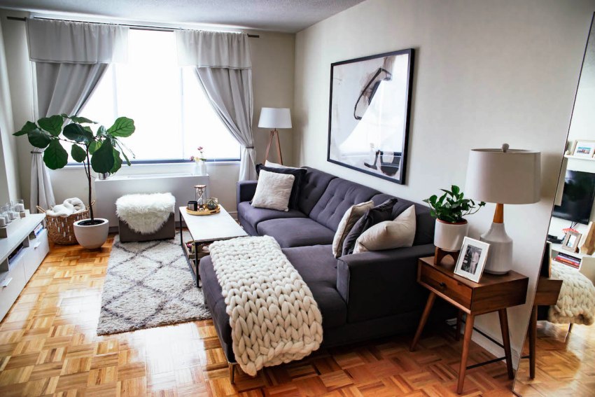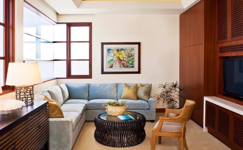 Tobogán de esquina de sala de estar: muebles para una habitación pequeña