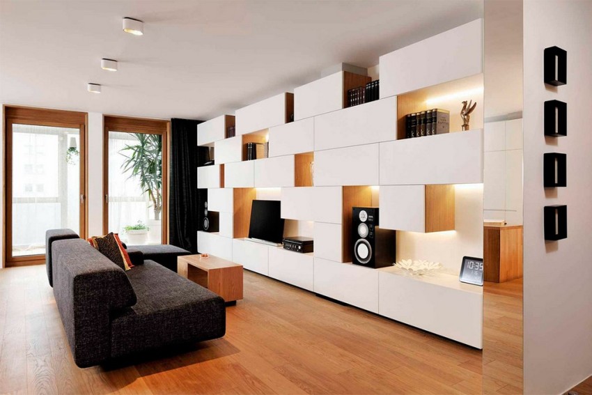 Las paredes deslizantes han ganado popularidad debido a la gran cantidad de estantes y gabinetes convenientes para almacenar las cosas necesarias.