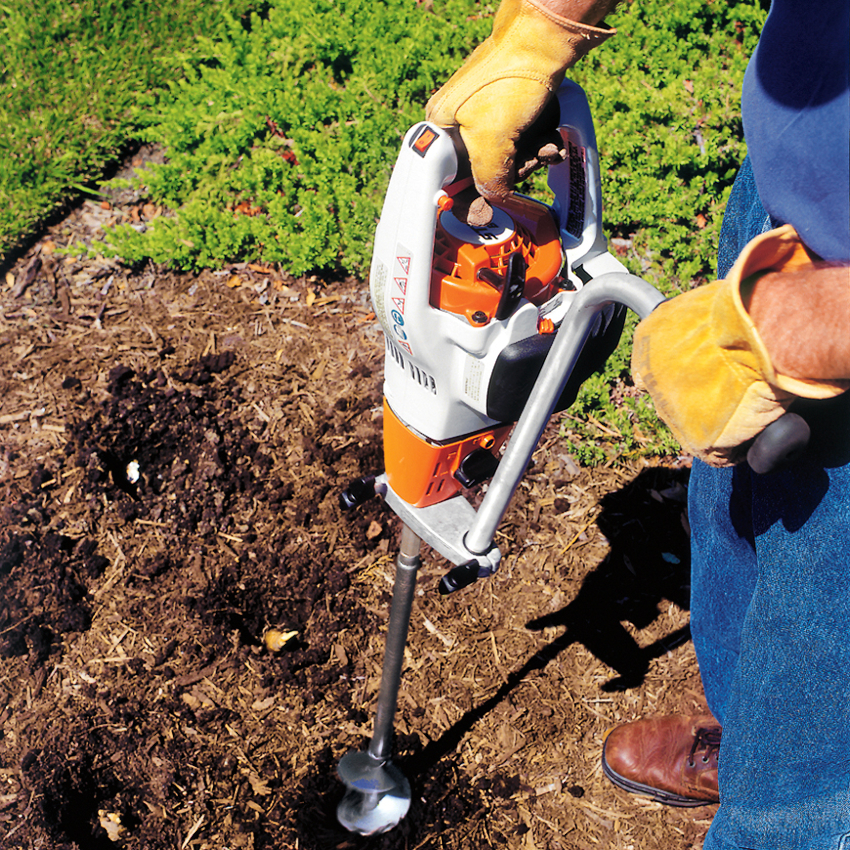 El taladro de tierra TISE está equipado con una base de apoyo y complementado con algunos elementos. El receptor de suelo con placas de barrena y cortadores especiales asegura una rápida extracción del suelo del pozo. Gracias al acumulador cilíndrico, es posible realizar un agujero perfectamente recto en posición vertical. La sección de la pluma expandible ayuda a ajustar la profundidad deseada. Si se encuentran obstáculos en el suelo, el pasador guía viene al rescate.
