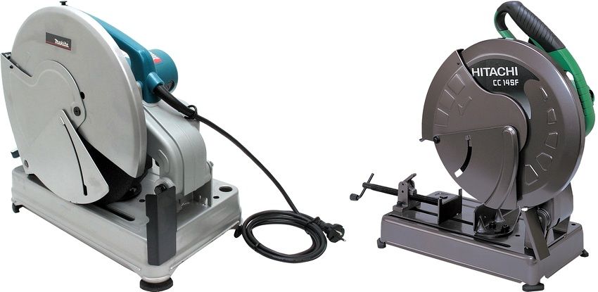 Modelos populares de sierras de corte para metal: izquierda - Makita 2414NB, derecha - Hitachi CC14SF