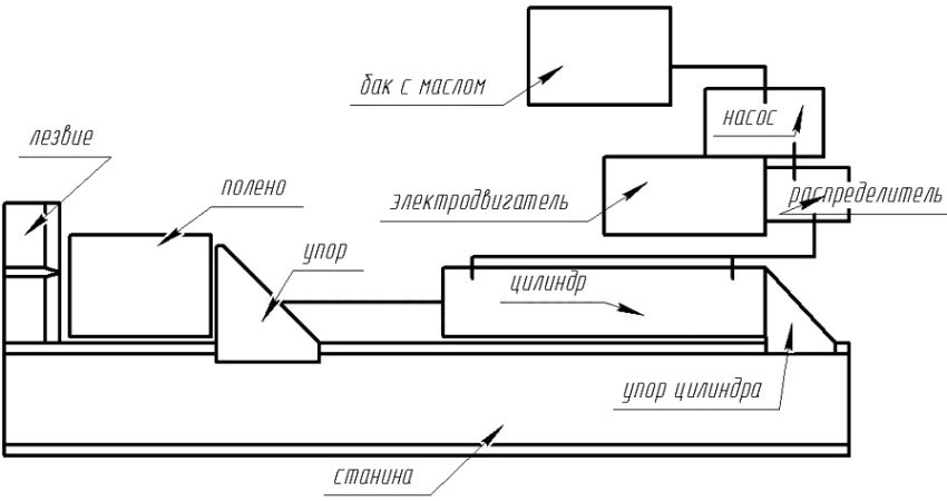 ¡Aviso util! Si no necesita cortar madera a escala industrial, es mejor detenerse en la variante de un cortador de madera con una cuchilla en forma de cono, ensamblada a partir de piezas improvisadas. De lo contrario, monte el modelo hidráulico.