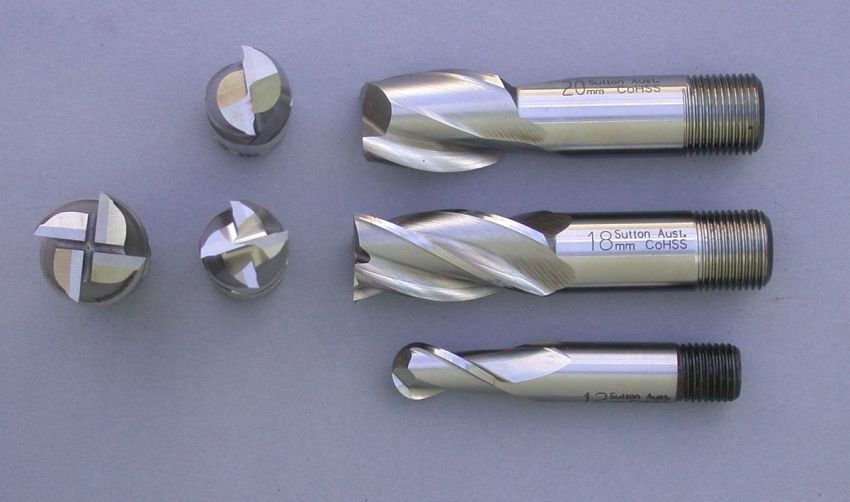 Fresas de extremo, que se encuentran entre las herramientas más comunes utilizadas para el trabajo de fresado manual