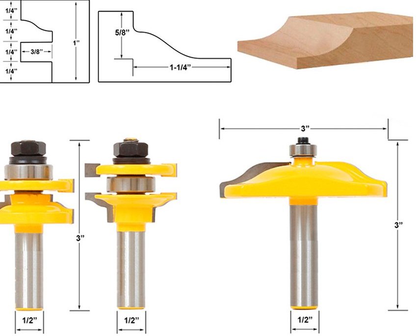 En algunos casos, no hay ningún cojinete en el diseño del cortador. Para trabajar con una pieza de este tipo, necesitará una plantilla y una funda de copia o un tope paralelo. El tamaño de los cortadores de molduras depende de la altura de corte. Si el perfil tiene varios redondeos, el fabricante indica las dimensiones del diámetro más grande que se puede obtener con dicha pieza. Además, la distancia entre las piezas de corte se puede ajustar a su discreción.