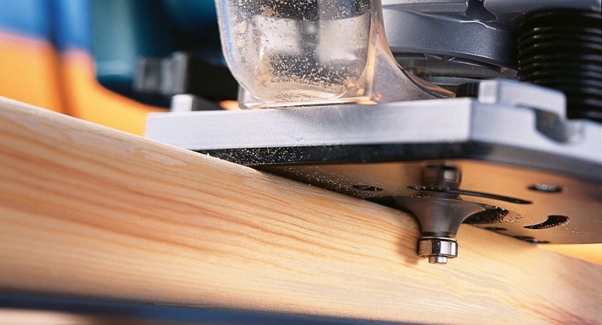 En la mayoría de los casos, los cortadores de biselado están equipados con un cojinete de empuje. Este elemento limita el movimiento de la herramienta, evitando que se hunda en la madera. En este caso, la parte de corte de la pieza se puede ubicar por encima o por debajo del rodamiento. Al colocar la plataforma de soporte de la herramienta en una posición determinada, puede ajustar la profundidad del voladizo del cortador.