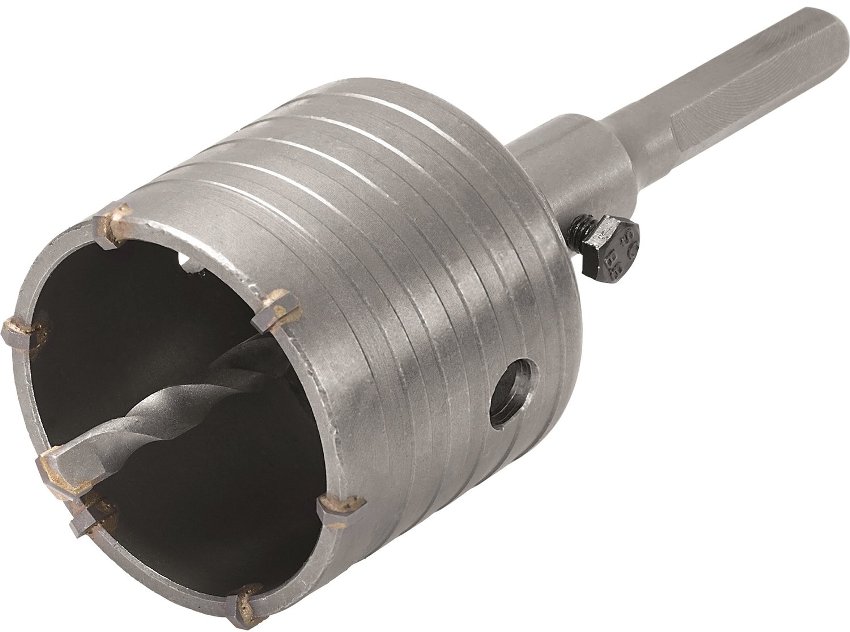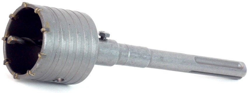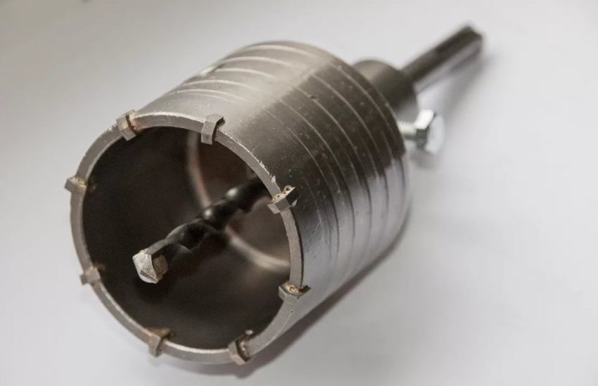Se trata de una pieza de tubo metálico, uno de cuyos extremos tiene dientes de material de alta resistencia y en el otro una brida con la que se fija el dispositivo al mecanismo giratorio. Hay un agujero en el vástago para colocar un taladro central, que asegura la dirección de rotación deseada de la broca. El taladro siempre viene con un cortador. Si es necesario hacer un orificio pasante en paredes gruesas, se usa una extensión para una corona de concreto. Amplía significativamente las capacidades operativas del dispositivo.