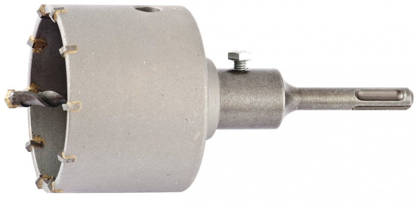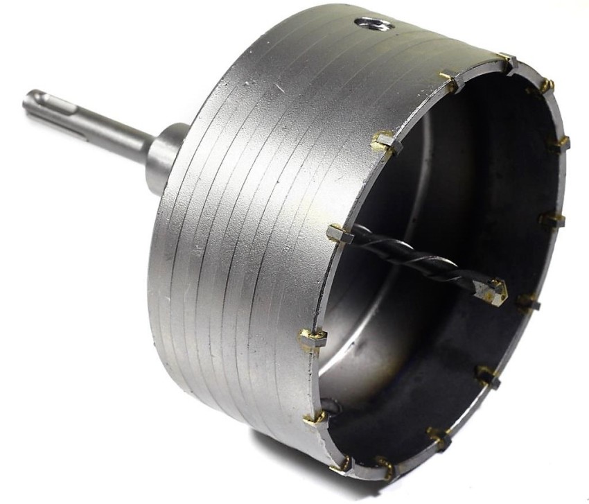 Durante los trabajos de construcción o renovación, a menudo es necesario perforar agujeros grandes, especialmente para las conexiones de agua y alcantarillado. En tales casos, se usa una corona con un diámetro de 100 mm. Puedes comprar este cortador de metal duro. Es económico: 400-450 rublos. No debe tener miedo al comprar un cortador de fabricación china, ya que en términos de rendimiento no es inferior a sus homólogos rusos.