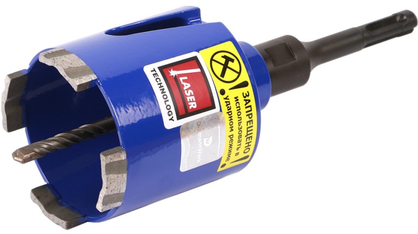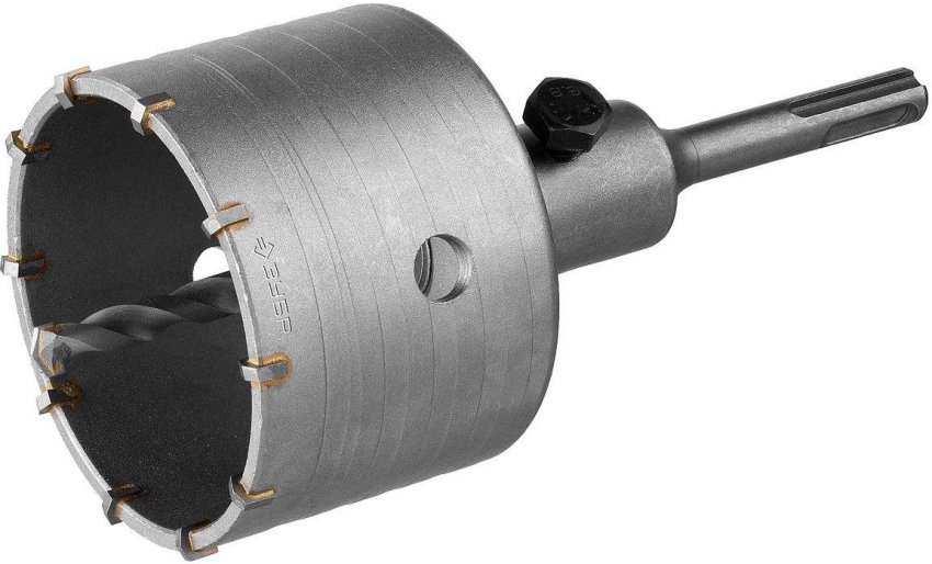 En las opciones de carburo (victorioso), los cortadores se colocan en un ángulo negativo de 7 °. Esta disposición amortigua la intensidad de la carga dinámica en la boquilla, reduce el efecto del descentramiento radial y final. Este accesorio se puede utilizar para martillos perforadores con una capacidad de 850 W y más. El sistema SDS Plus se utiliza como soporte.
