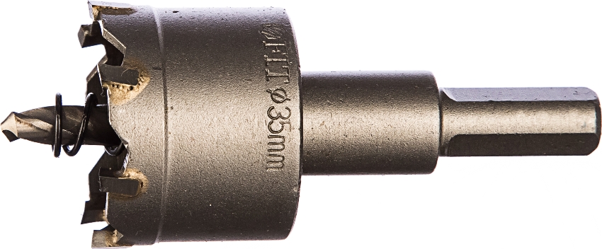 Cabe señalar que el espesor del metal de 2 mm no es el límite para estas boquillas. Por ejemplo, con una corona de metal Fit de 60 mm, puede perforar una hoja de 3 mm sin dañar el filo y sin enfriamiento adicional. El vástago de las boquillas más de 32 mm hexagonales, lo que le permite sujetar firmemente el cuerpo del cortador a la herramienta eléctrica.