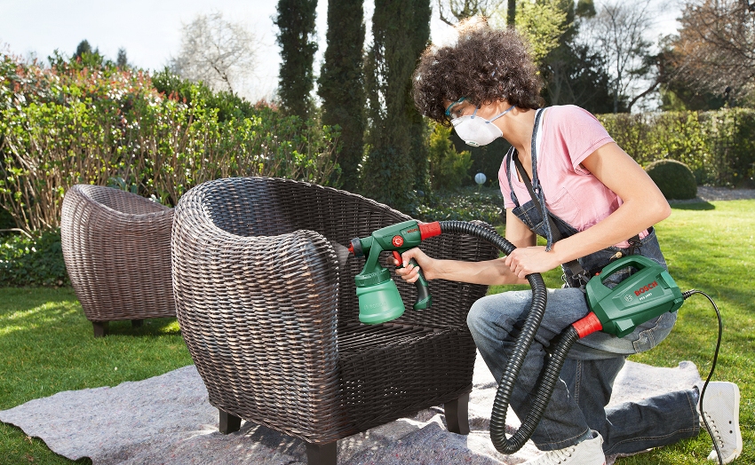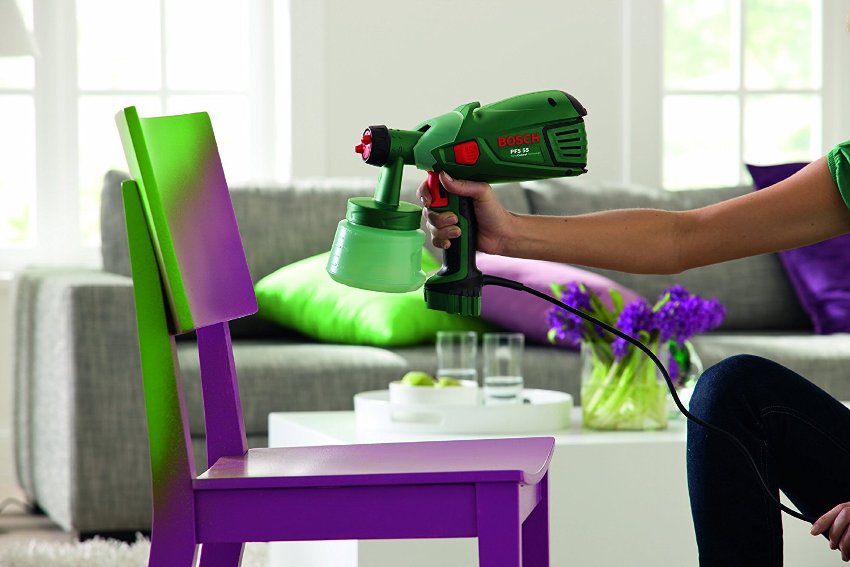 En la construcción, estos accesorios se utilizan para aplicar imprimación, pintura y barniz.Y también los pulverizadores se utilizan para la restauración de muebles y electrodomésticos. Esto se explica fácilmente por el hecho de que estos dispositivos le permiten aplicar una capa de pintura de alta calidad que no contiene áreas borrosas o sin procesar. Un procedimiento similar realizado en casa no es de ninguna manera inferior al de fábrica.