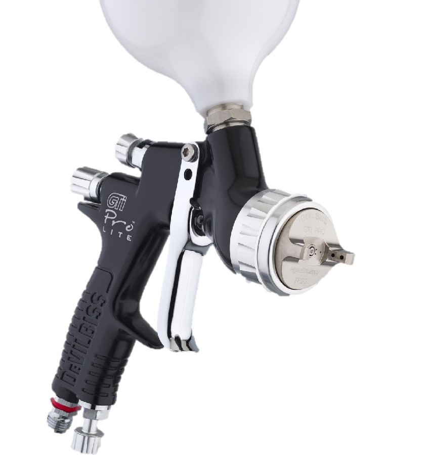 La pistola pulverizadora superligera DeVilbiss GTi PRo Lite está diseñada para trabajos prolongados y de alto rendimiento