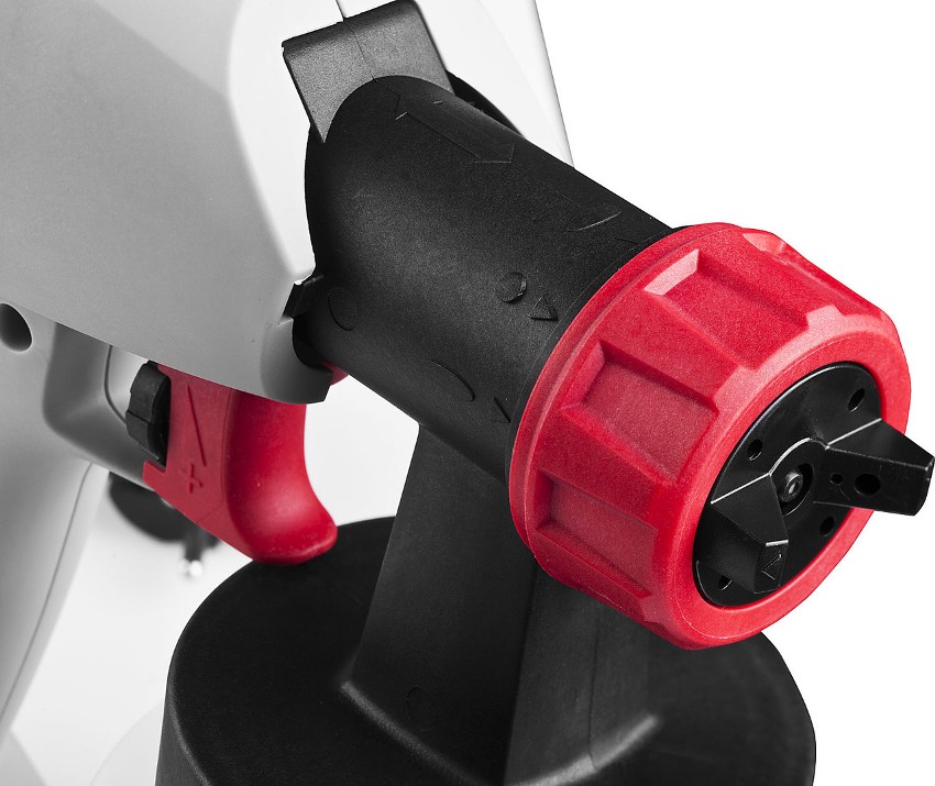 ¡Nota! Si es necesario, durante la operación, puede ajustar la intensidad del suministro de material de pintura y barniz. Esta opción permite el uso de formulaciones con diferentes viscosidades. Además, en los dispositivos Zubr, se implementa otra opción de ajuste: cambiar la forma de la boquilla. Esto le permite ajustar la boquilla y elegir uno de los modos de pintura: horizontal, vertical y para superficies de difícil acceso.
