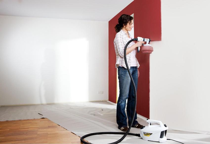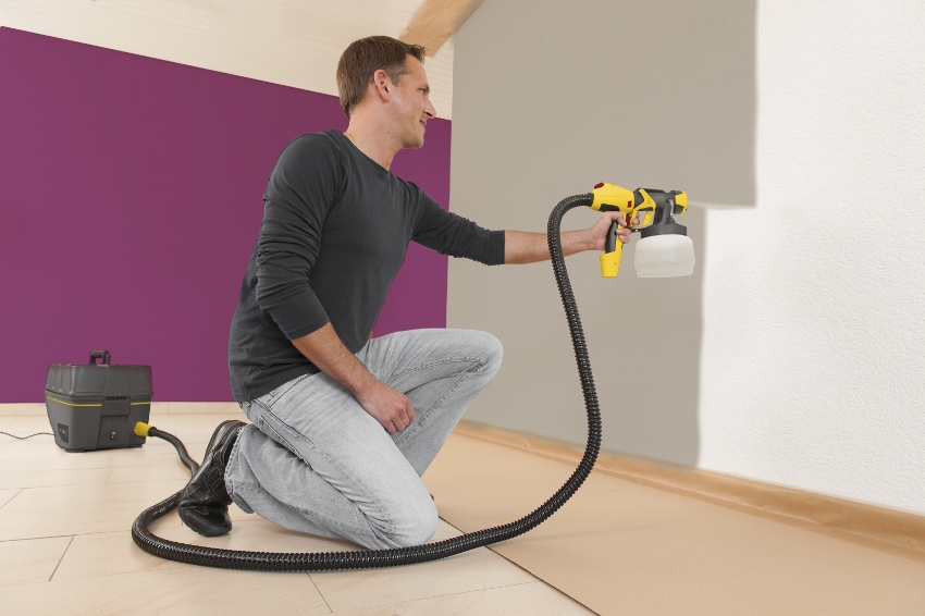 La pistola rociadora para pintura a base de agua se usa con mayor frecuencia en la construcción. Se utiliza para pintar techos y paredes. La calidad del recubrimiento obtenida como resultado de trabajar con este dispositivo es bastante alta. La capa se deposita uniformemente; no se forman en la pared manchas, gotas, manchas y otras irregularidades que destacan sobre el fondo general.