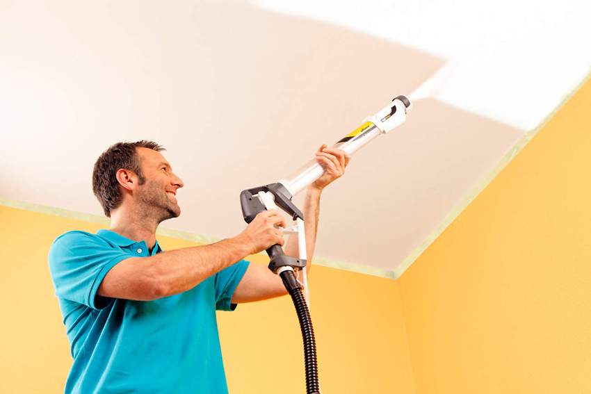 Al usar un spray eléctrico, se minimizan los riesgos de manchas, gotas y otros defectos. Por lo tanto, son estos dispositivos los más apropiados para pintar techos. En este caso, las pistolas pulverizadoras manuales no son adecuadas, ya que no se caracterizan por una alta calidad de la capa de pintura. Además, no pueden generar una presión que exceda el indicador estandarizado de 2 atmósferas.