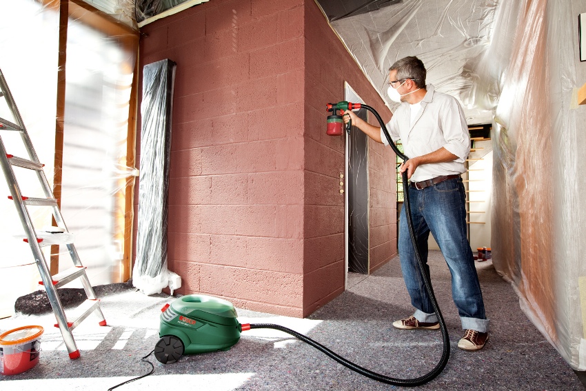 Antes de comenzar a trabajar, se recomienda realizar una tinción de prueba. Esto le permitirá personalizar su pistola rociadora. Si está pintando paredes, debe recordar que debe adherirse a una cierta distancia del techo y el piso, para no salpicarlos con la composición. Luego, las áreas faltantes se tratan con una brocha o rodillo. Las pistolas rociadoras eléctricas para el hogar son las más efectivas, pero cuestan más que los modelos manuales. La elección del dispositivo se basa en el alcance del trabajo futuro.