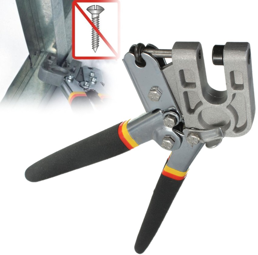 El fabricante alemán de hardware se ha establecido desde hace mucho tiempo en el mercado con un lado positivo. Los alicates están diseñados para fijar las guías mediante un corte con un doblez de los pétalos galvanizados. Ayudarán al artesano del hogar a realizar pequeñas reparaciones de locales sin el uso de tornillos y otros sujetadores, lo que aumentará significativamente la productividad del trabajo, lo que permitirá que se lleve a cabo con una mano.