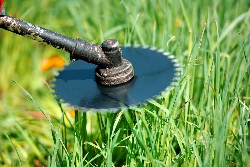 Para segar, use un carrete de hilo (alimentación semiautomática) o un cuchillo de metal con tres hojas. La línea puede cortar la hierba alrededor de arbustos y árboles sin dañar la corteza de estas plantaciones. Quitar las malas hierbas y el césped seco requerirá la ayuda de un cuchillo giratorio.