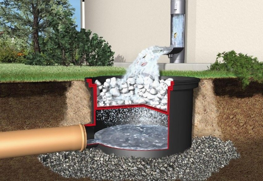 Los pozos de absorción se utilizan cuando el sitio no tiene condiciones para el drenaje del agua. Tales modelos no tienen fondo. En la parte inferior de la estructura hay una almohada de arena y piedra triturada, que actúan como filtros, dejando entrar agua purificada al suelo.