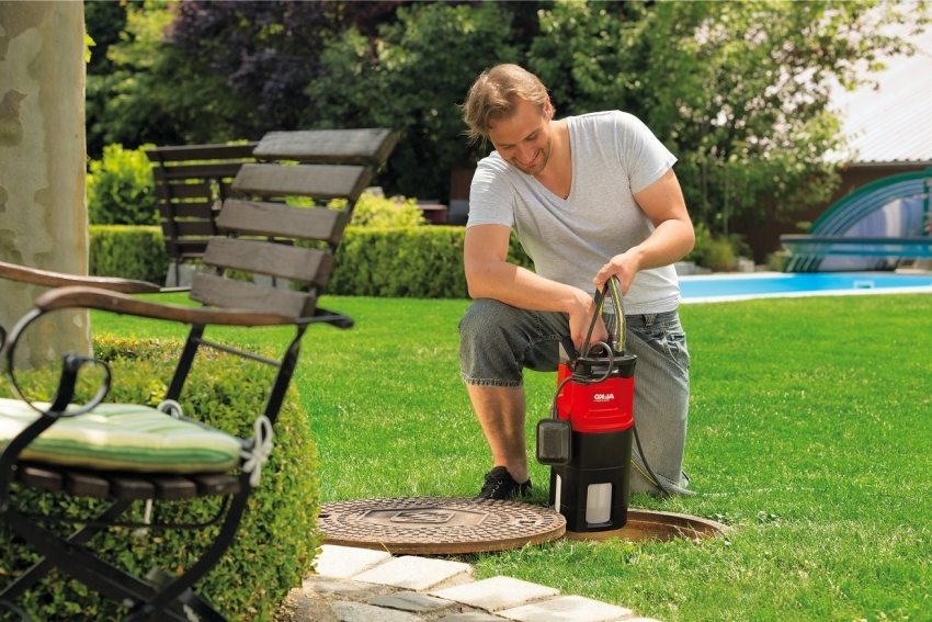 Según el tipo de instalación, se pueden utilizar bombas sumergibles y de superficie para dar servicio a los sistemas de drenaje. Los modelos sumergibles durante la instalación se colocan directamente en la columna de agua mediante un cable. Habiendo alcanzado la marca requerida, el dispositivo está fijo. Este tipo de bomba se encuentra en la profundidad del pozo de drenaje con una sangría desde la parte inferior de unos 50-100 cm.