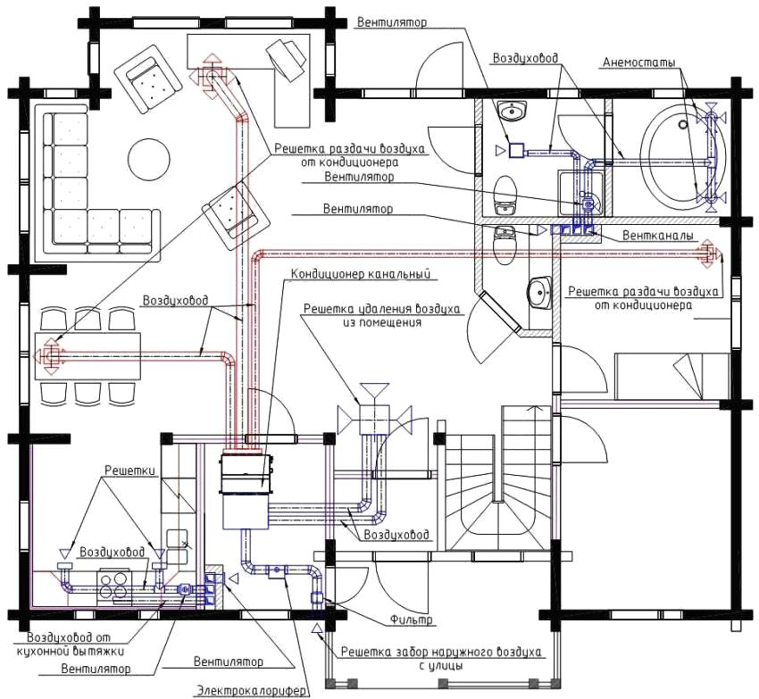 Las casas modernas, gracias a las ventanas de plástico, el aislamiento externo e interno, se vuelven bastante herméticas. Por un lado, esto es bueno, pero por otro lado, dificulta la entrada de aire fresco a la casa, su ventilación se detiene parcialmente o está completamente ausente. Para remediar la situación, el propietario del edificio de la casa debe diseñar un esquema de ventilación en una casa privada con sus propias manos, o contactar a especialistas para organizar un sistema de ventilación en una casa privada, cuyo esquema será proporcionado por el proyecto.