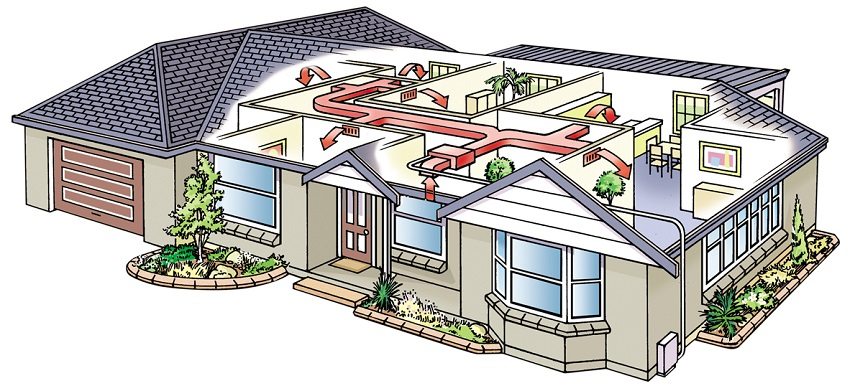 Debería hacer un diagrama de suministro y ventilación de escape de modo que la rejilla de entrada de aire y el ventilador estén montados en el lado norte. Se instala un filtro después del ventilador. Al montar el sistema, las salidas se disponen desde el conducto principal a cada habitación separada. Como bloque del conducto de aire principal, puede usar un refrigerador normal, donde el aire se calentará o enfriará. En verano, cuando la unidad está encendida, el aire se enfriará y en la estación fría puede usar calentador de aire, que emitirá calor al suministro de aire. Puedes en refrigerador Coloque una lámpara ultravioleta para un procesamiento adicional del aire exterior.