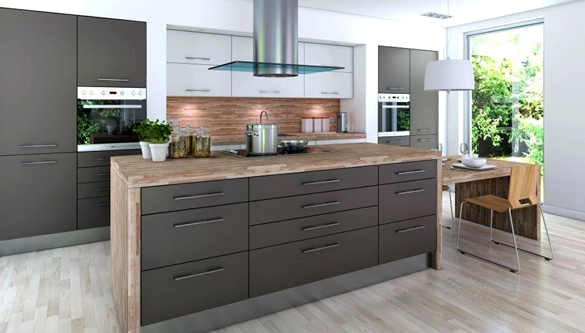Los diseñadores no recomiendan usar un color exclusivamente gris para un juego de cocina, porque se considera aburrido y demasiado fresco, especialmente si la cocina está mal iluminada. Si se eligió un color gris para la unidad de cocina, debe elegir diferentes texturas, usar inserciones de vidrio transparente y accesorios de cromo brillante que reflejen bien la luz.