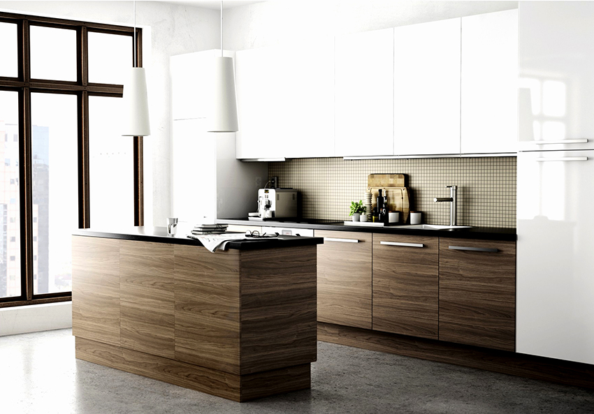 Al decorar una cocina blanco-marrón, está bastante permitido utilizar materiales económicos para la fabricación de fachadas, lo principal es que imitan correctamente la textura de la madera. Una cocina debidamente organizada en colores blanco y marrón se ve así: