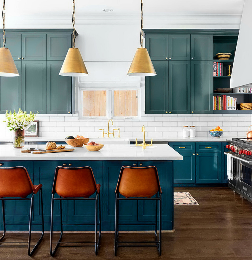 Cocina blanca con la adición de un tono esmeralda se verá increíblemente elegante