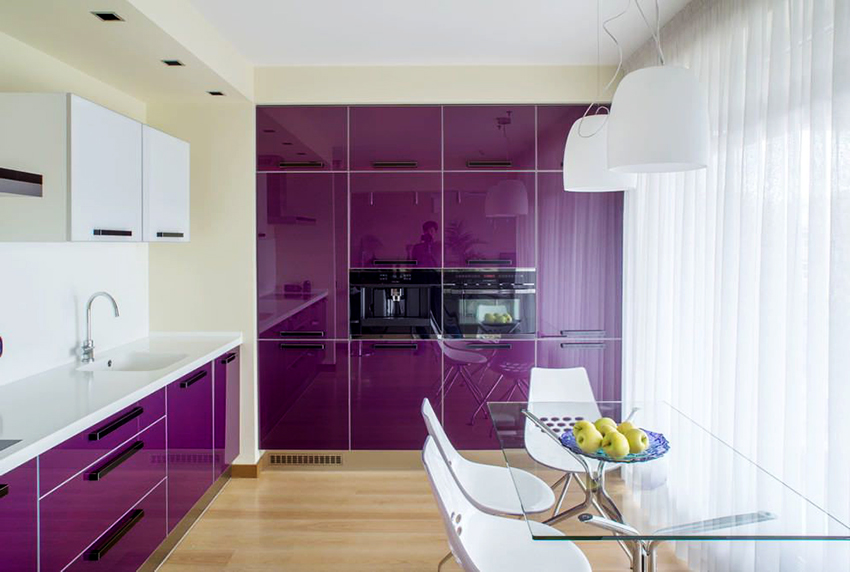 Fachadas de cocina en tonos morados. como gente activa y alegre