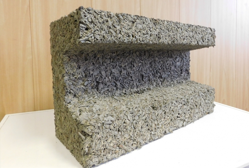 Para su producción también se utilizan astillas de madera reciclada y cemento. La producción de lienzos se realiza mediante apisonamiento y prensado. En comparación con el proceso de producción de losas de todos los grados de hormigón ligero, la producción de dichos productos a partir de hormigón de madera lleva mucho menos tiempo (la duración de la vibrocompresión es de solo 20 segundos). Para que los productos adquieran fuerza de marca, se dejan durante varios días en una habitación con un régimen de temperatura estrictamente medido.