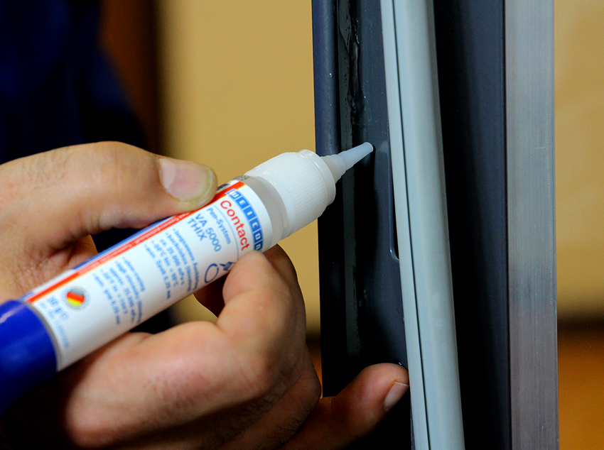 También es necesario tener en cuenta el pequeño consumo de cola de cianoacrilato por metro cuadrado: solo es de 30-50 g. Por lo tanto, con un dispensador, la cola se puede aplicar a: