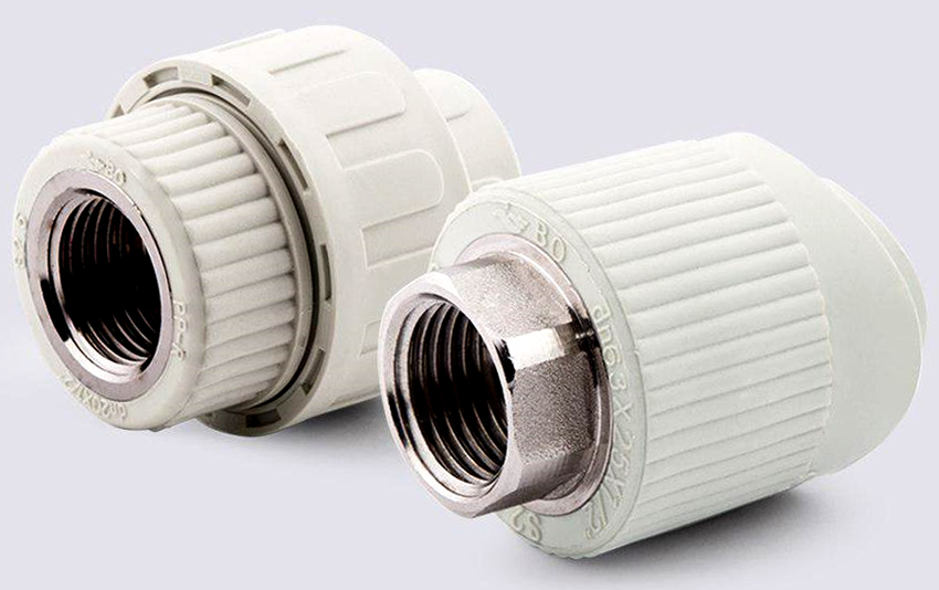 Para conectar una tubería de polipropileno a una manguera flexible, se utilizan accesorios con una tuerca de unión. Para cambiar la dirección de la tubería, se utilizan ángulos y ángulos, que proporcionan un giro de 45 o 90 °. Pueden ser rectas (para conectar elementos de un mismo tramo) o transicionales con rosca interior o exterior, con o sin tuerca de unión. Los tamaños de los accesorios para tuberías de polipropileno están en el rango de 20-160 mm.