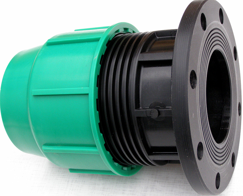 Los elementos de brida se utilizan al conectar una tubería de plástico con una de metal. Estos productos constan de una brida de acero y un manguito. La primera parte se fija con espárragos o pernos a la contrabrida, que se suelda al tubo metálico, y la segunda se une a la sección plástica de la línea.