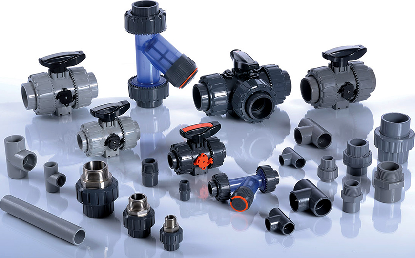Los adaptadores se utilizan para sujetar las válvulas al sistema. Este tipo de accesorio se utiliza para conectar tuberías de diferentes materiales. Para cambiar la dirección de la línea, se instalan curvas con un ángulo de 45, 60 y 95 °. Las tes y las cruces están destinadas a la ramificación.