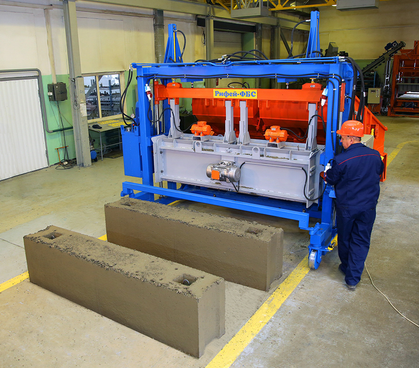 El lote se prepara en una hormigonera de tipo forzado, donde la mezcla debe adquirir una consistencia uniforme. La solución preparada se alimenta en moldes de metal especiales, cuyas paredes internas están pretratadas con grasa industrial. En esta etapa, se puede colocar un refuerzo, lo que afecta las características de resistencia de los productos y el precio de los bloques para la base. Cada molde está dividido en varios compartimentos y está equipado con laterales extraíbles para una extracción rápida y sencilla de los productos mediante una grúa.