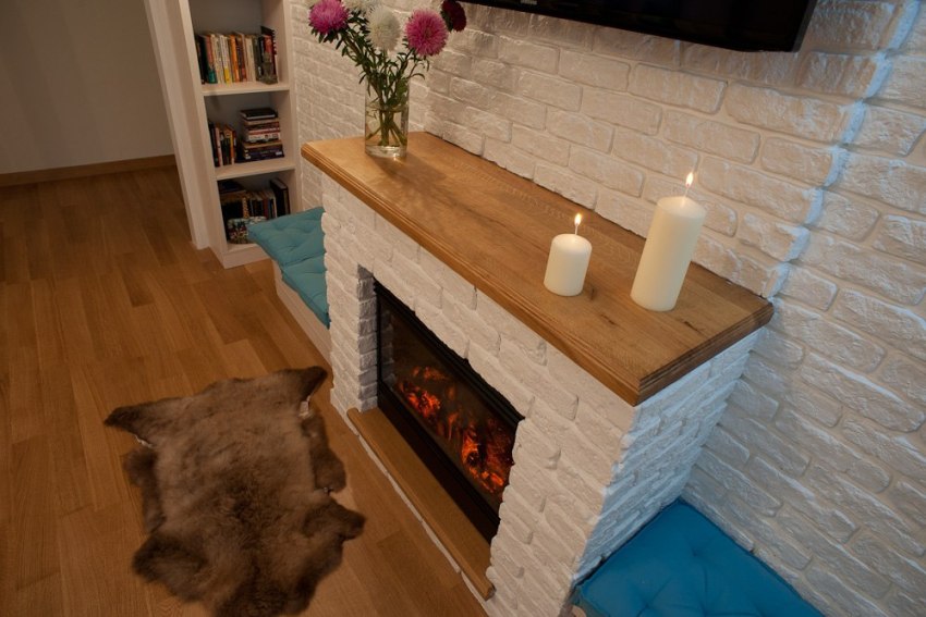 ¡Consejo útil! Las baldosas de ladrillo son un material excelente para decorar una chimenea. No solo es resistente a las altas temperaturas, sino también ignífugo.