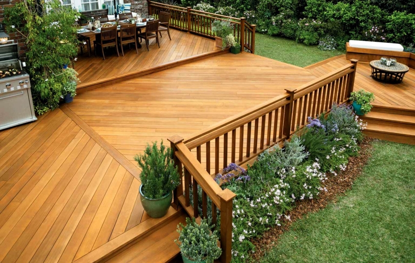 Tinte Premium Woodflex marca Drevoplast tiene un alto nivel de propiedades hidrofóbicas, por lo que se recomienda su uso para terrazas al aire libre