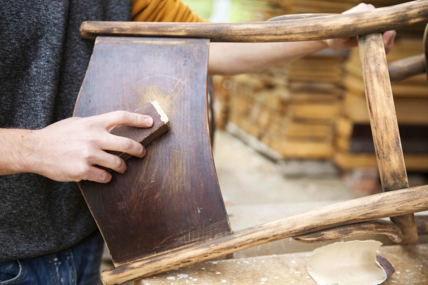 Antes de pintar la madera se lija cuidadosamente. Después de aplicar la primera capa, debe esperar hasta que se seque y luego trabajar con una esponja o papel de lija de grano fino para eliminar la pelusa. Este procedimiento evitará el movimiento capilar de líquido en la madera a través de la pila.